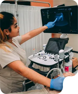 Echocardiography, commonly known as an "echo" is a non-invasive ultrasound imaging test that uses high-frequency sound waves to create detailed pictures of the heart’s structure and function. During a visit, an ultrasound technologist will apply gel to the chest and use a transducer to send and receive sound waves, which are then converted into real-time images displayed on a monitor. This diagnostic tool is invaluable for assessing heart chamber size, wall motion, valve function, and blood flow dynamics, providing crucial information or diagnosing various cardiac conditions.